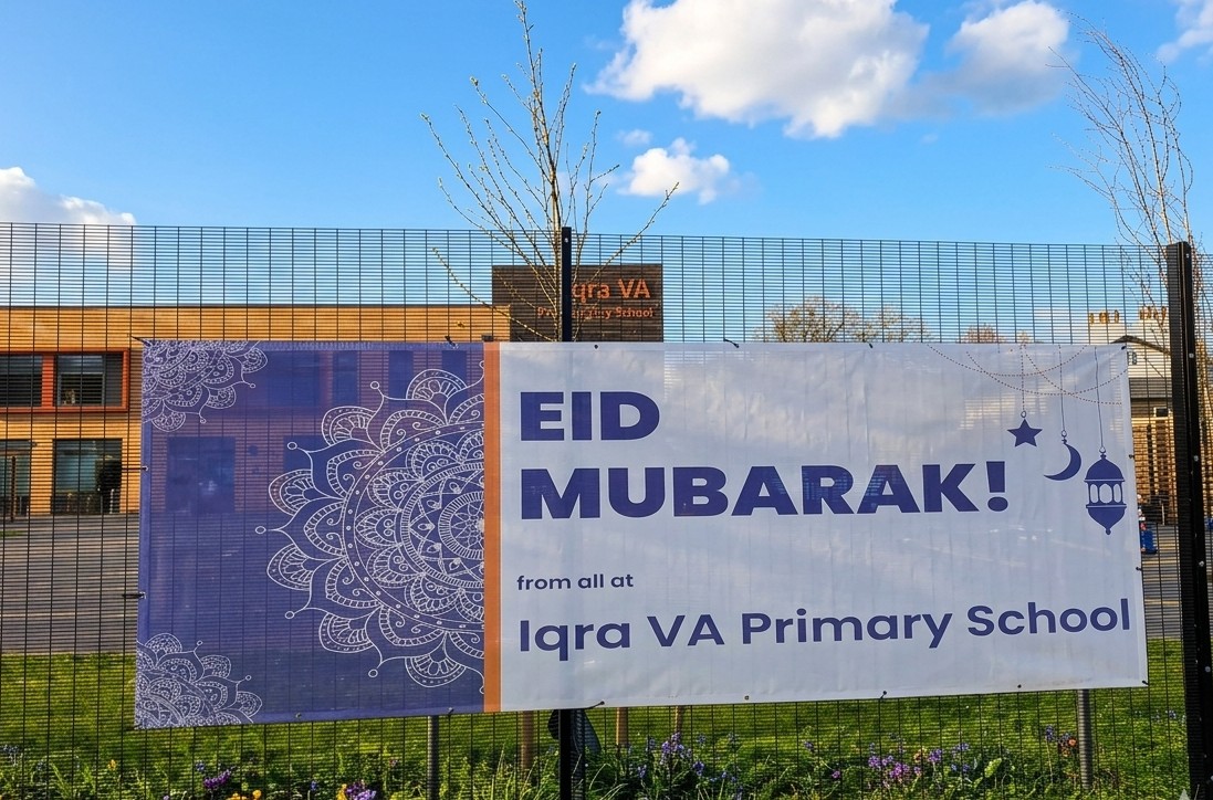 This sense of celebration and community joy wasn't just contained inside the school. Thousands of cars pass by our school every day, and we are now spreading that joy to the wider community through our two large Eid Mubarak banners. We have proudly placed one facing Park Hill and the other facing King Avenue, sharing our festivities with everyone who travels past.